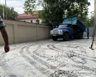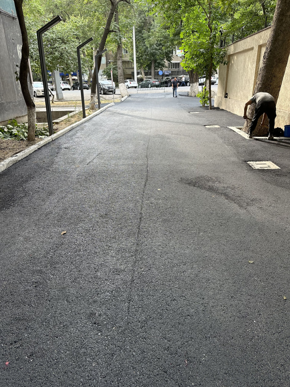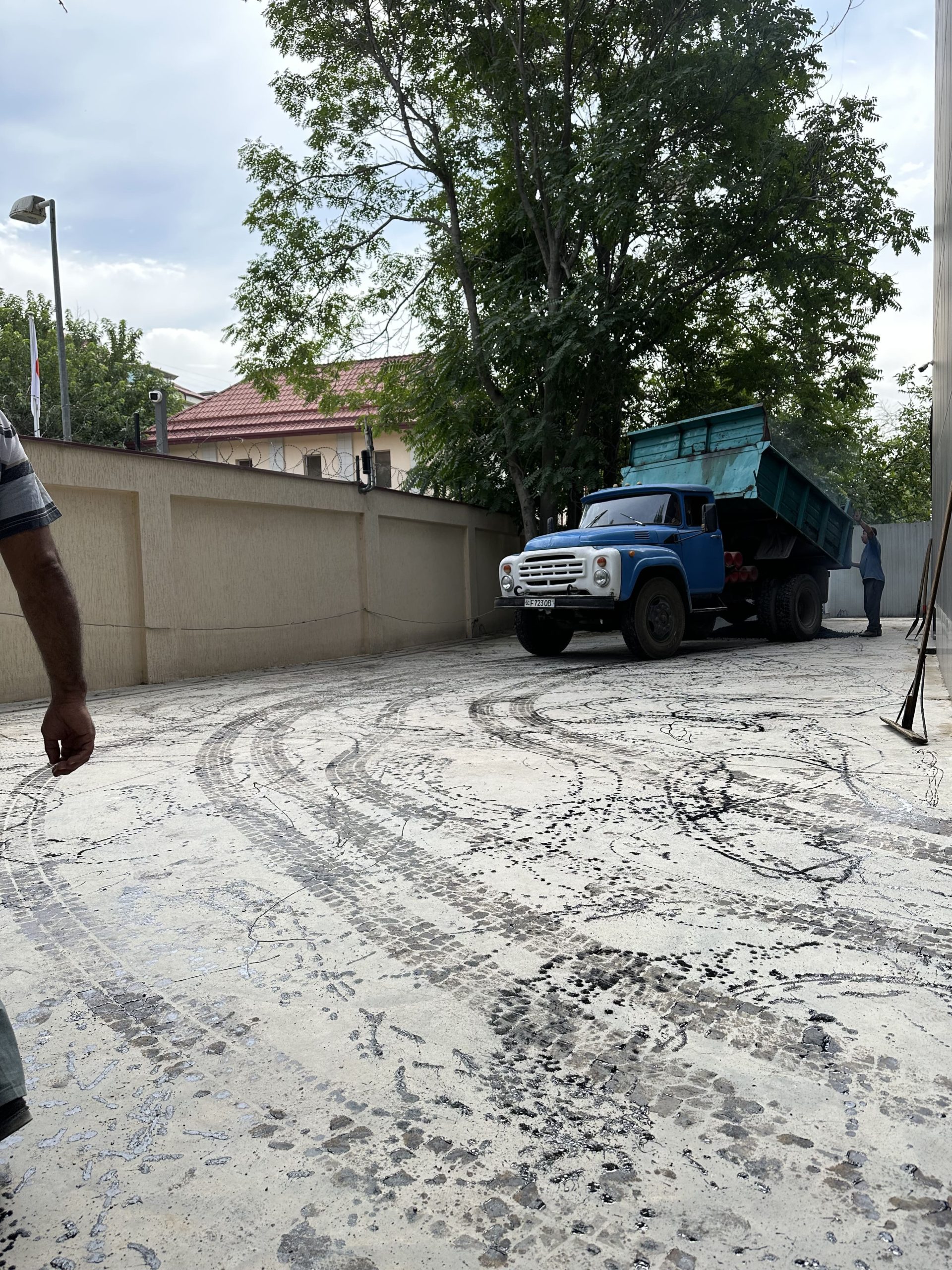 Нашей компанией по просьбе заказчика было за асфальтирована участок площадью 1100 квадратных метров. Основной проблемой заказчика была бетон которая пылился после каждого зимнего периода.