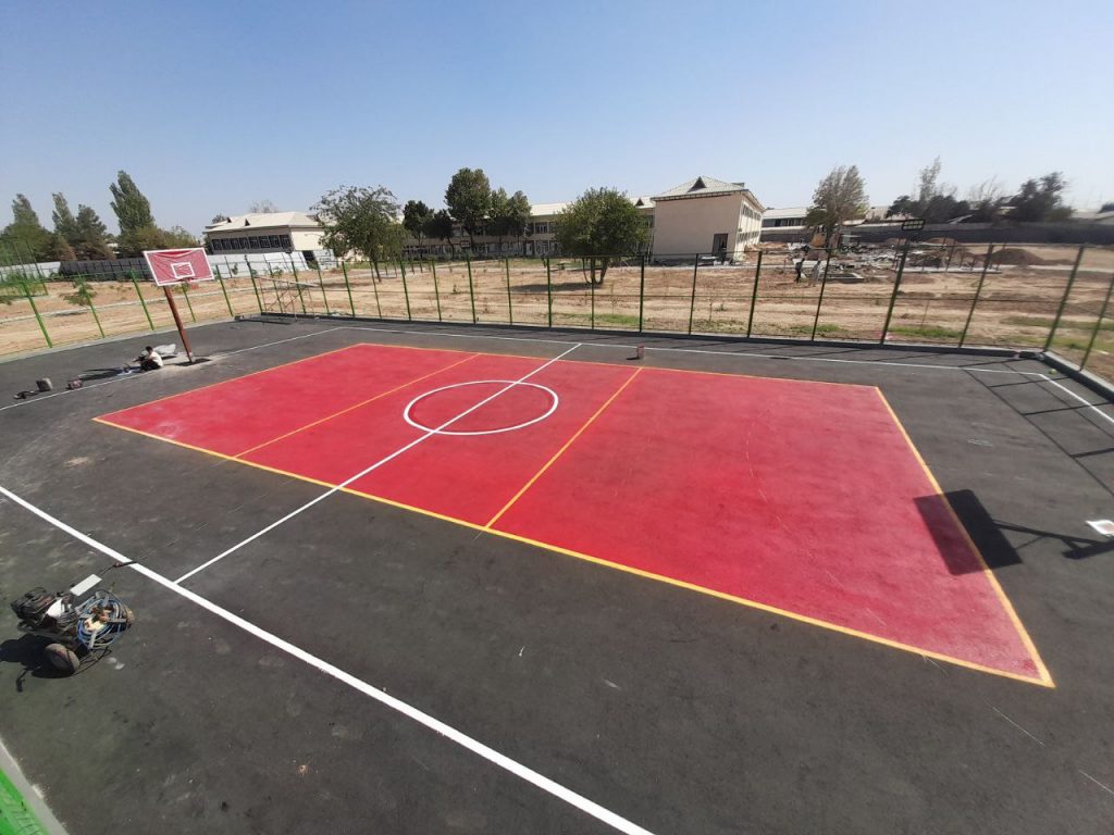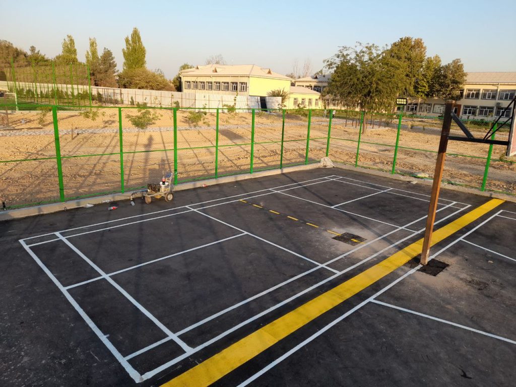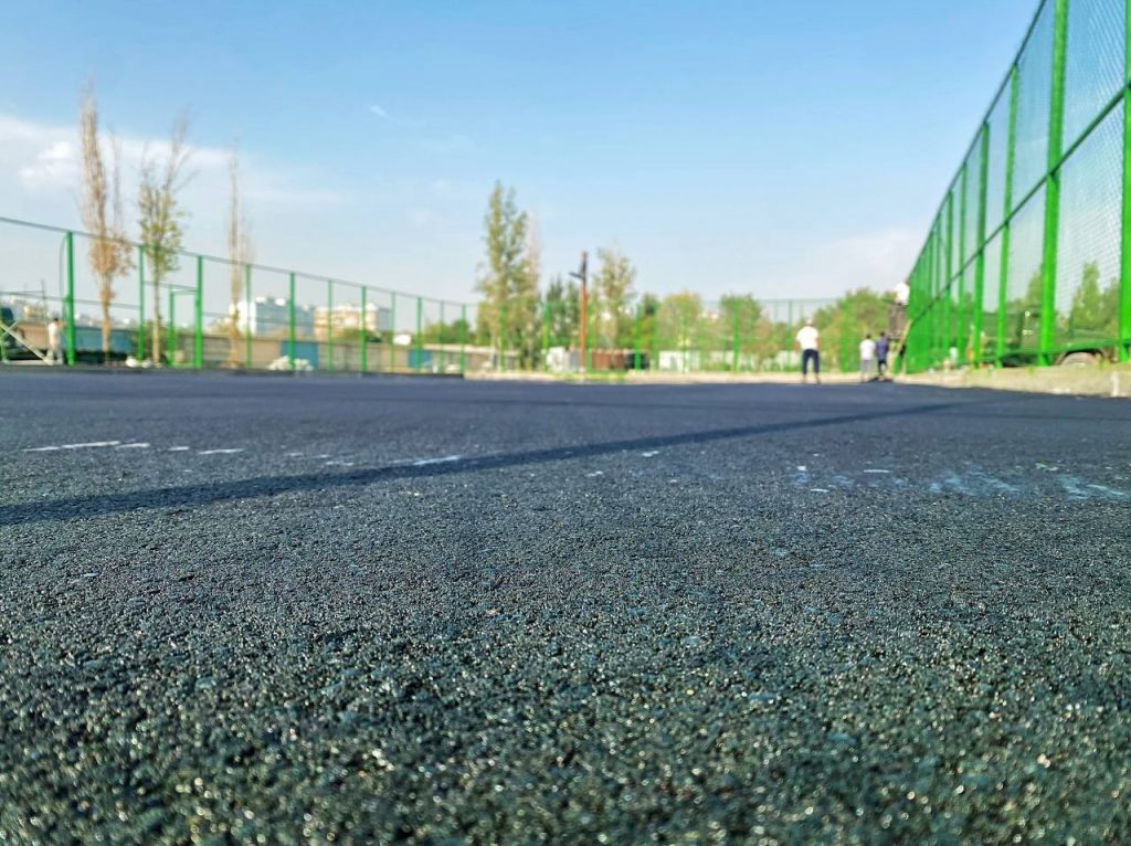 Нашей компанией осуществлен выпуск специального песчаного асфальта и была сделана укладка согласно всем стандартам. Также мы сделали красивую разметку и покраску площадки в установленном порядке.